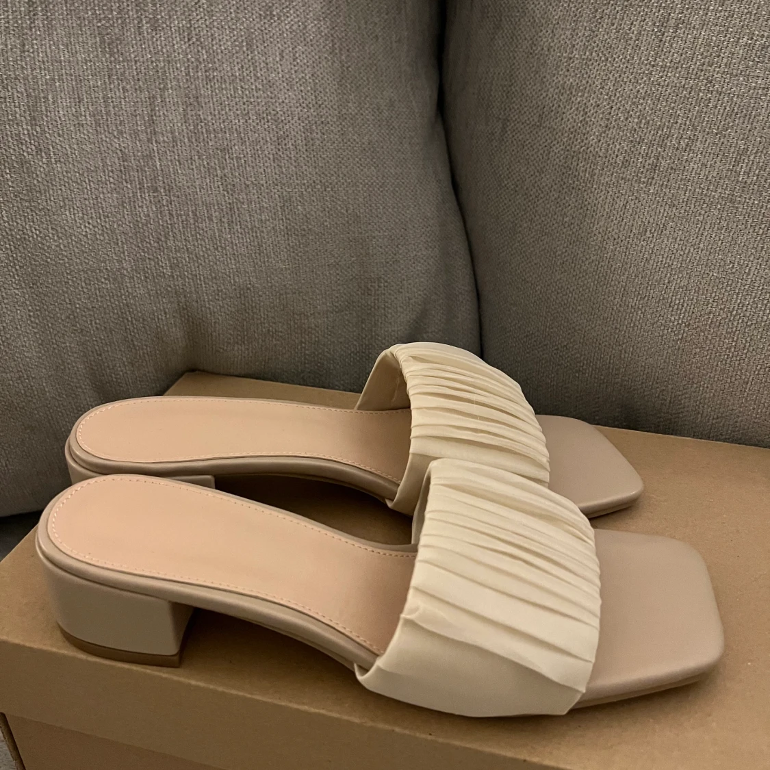 Smutsrosa/ beige klackar, aldrig använda i storlek 37, säljer för 80kr