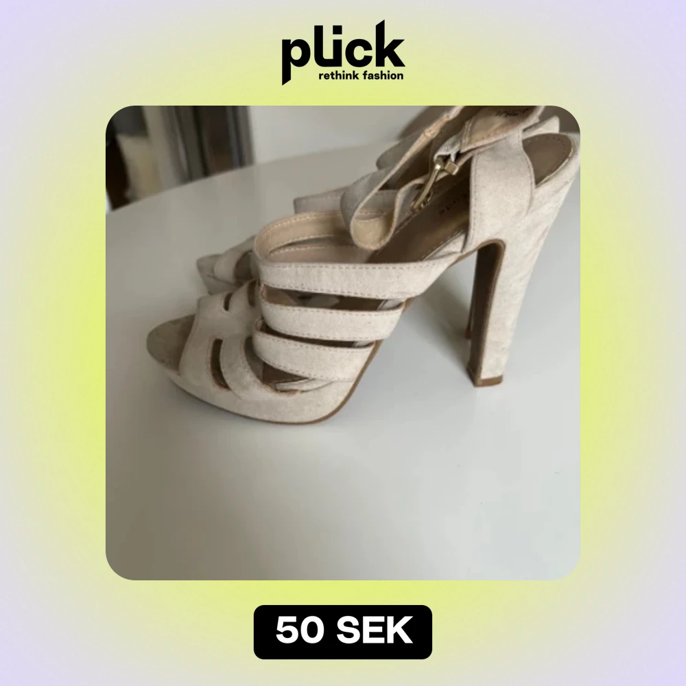 Säljer ett par beiga klackskor i st 37 med 12 cm klack. Skorna är sparsamt använda.