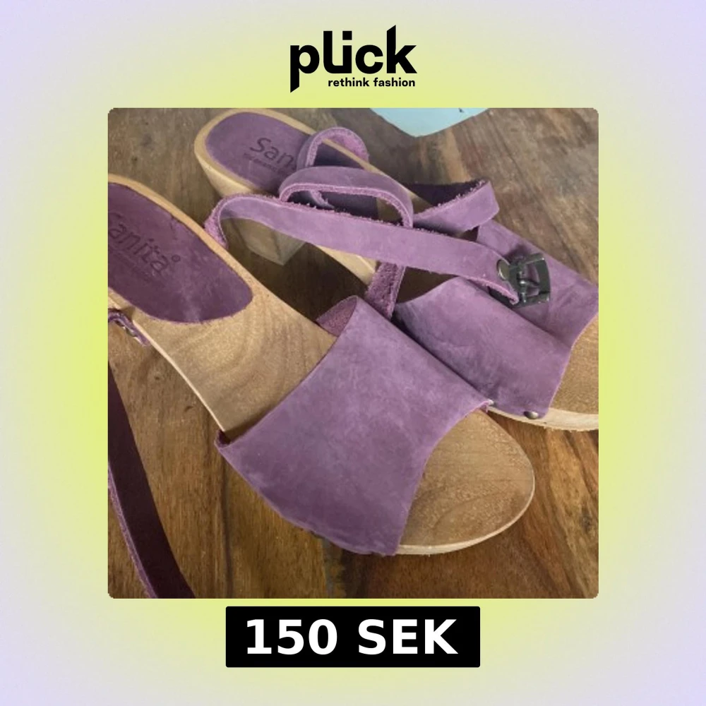 Snygga lila sandaler från Sanita med träklack och remmar i mocka. Perfekta för sommarens alla tillfällen. De har en robust klack och en bekväm passform.