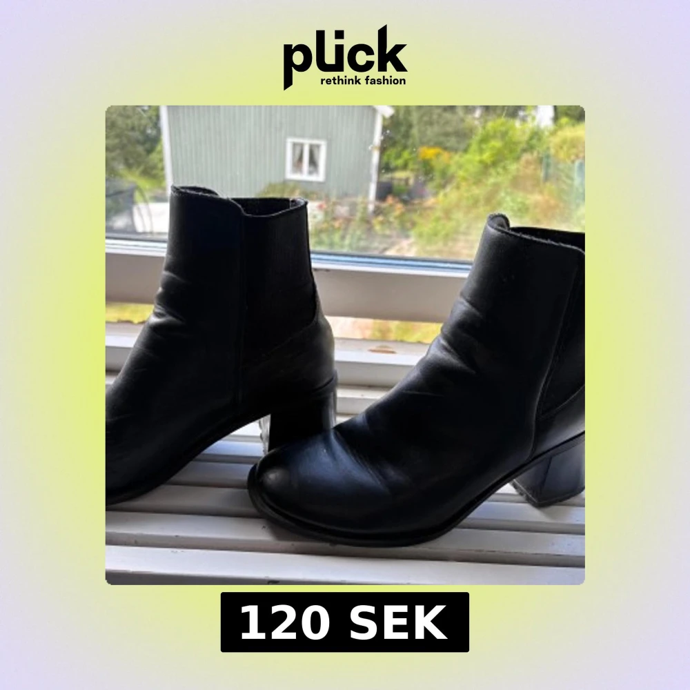Stilrena svarta chelsea boots i skinnimitation med bred klack och rund tå. Resår på sidorna gör dem enkla att ta på och av. Perfekta för dig som vill ha en klassisk look med lite edge.