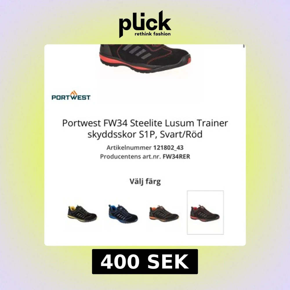 Skyddsskor från Portwest i modellen FW34 Steelite Lusum Trainer. Snygg svart och röd design med snörning och sportig look. Ovandel i textil och syntet, tåhätta i stål och slitstark sula. Perfekta för dig som vill ha både stil och säkerhet på jobbet.