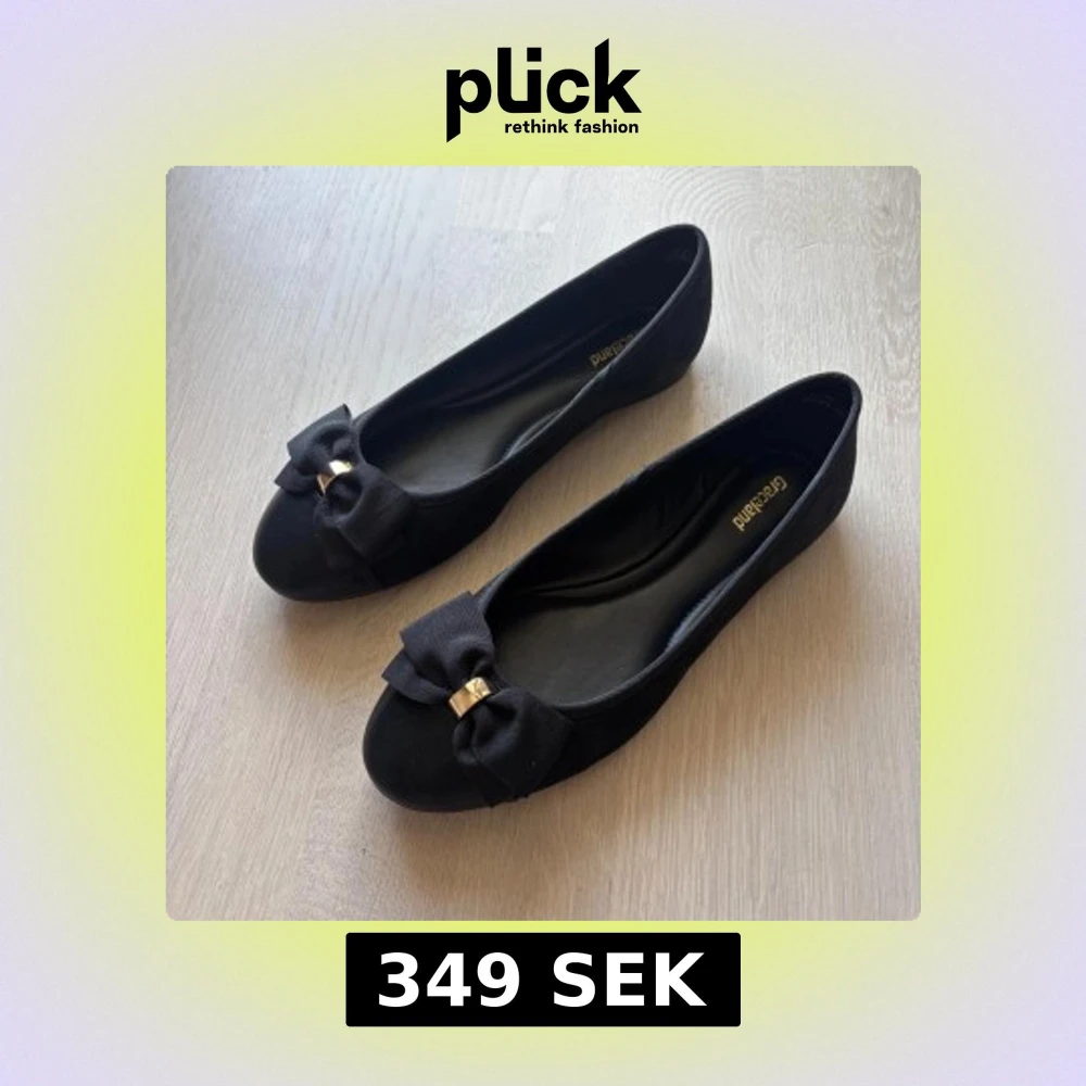Snygga svarta ballerinaskor från Graceland med rund tå och dekorativ rosett framtill, detaljerad med ett guldfärgat spänne. Skorna har en klassisk och stilren look, perfekt för dig som gillar enkel men söt stil. Materialet är mjukt och bekvämt.