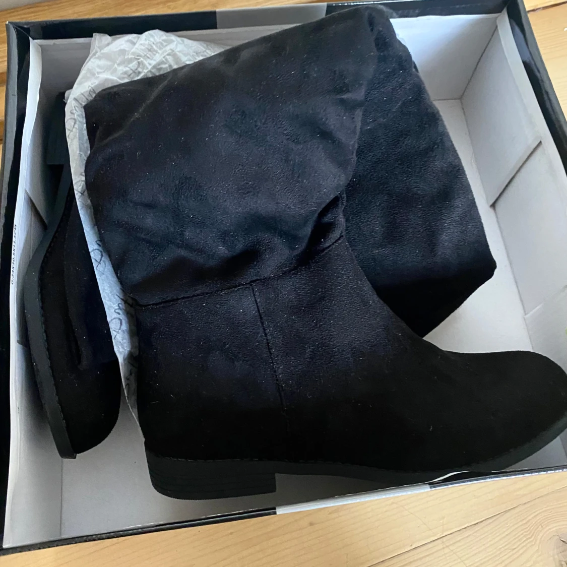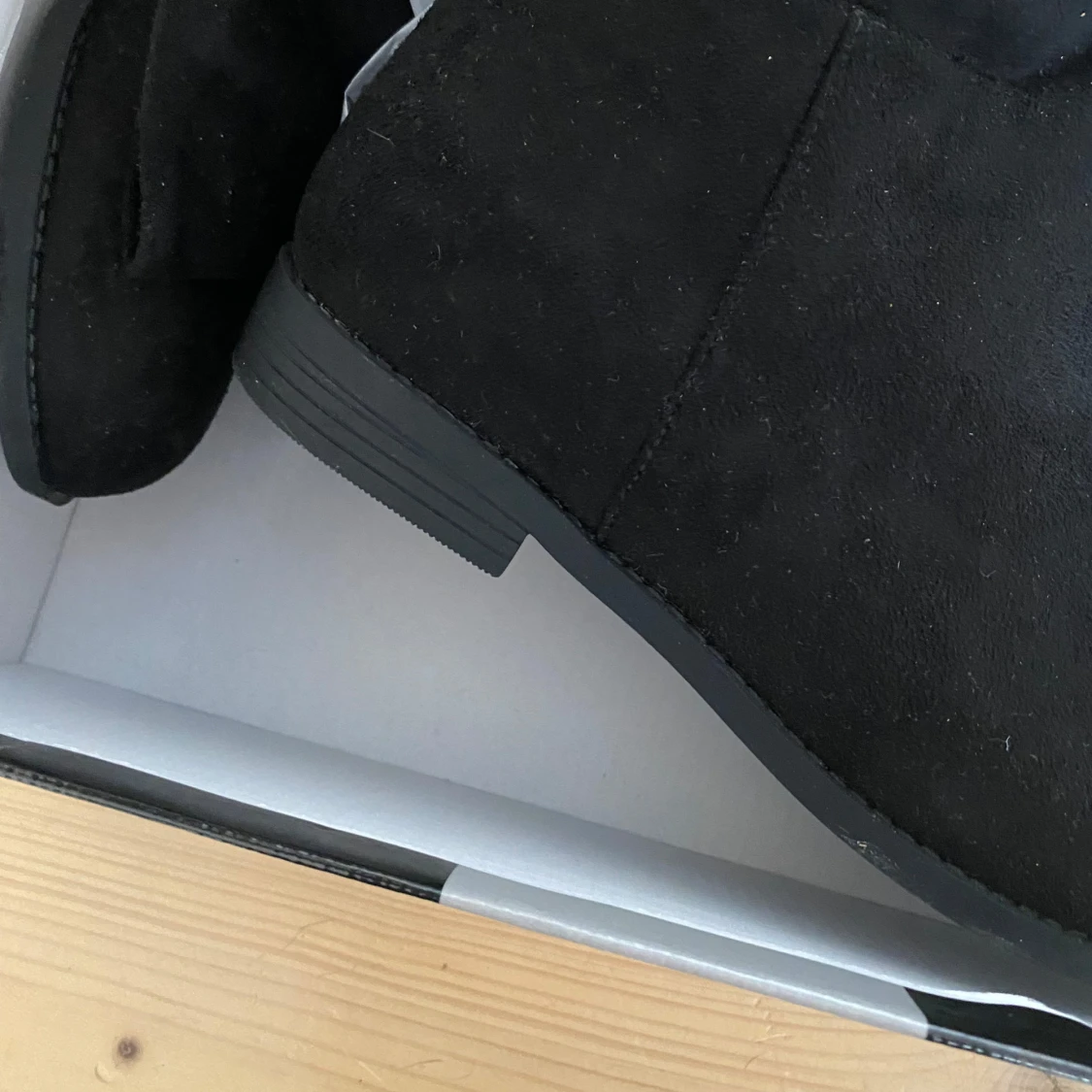 Snygga svarta boots från Duffy i mocka. Perfekta för våren och sena sommar kvällar. De har en låg klack och är bekväma att bära. Kommer i originalförpackning.