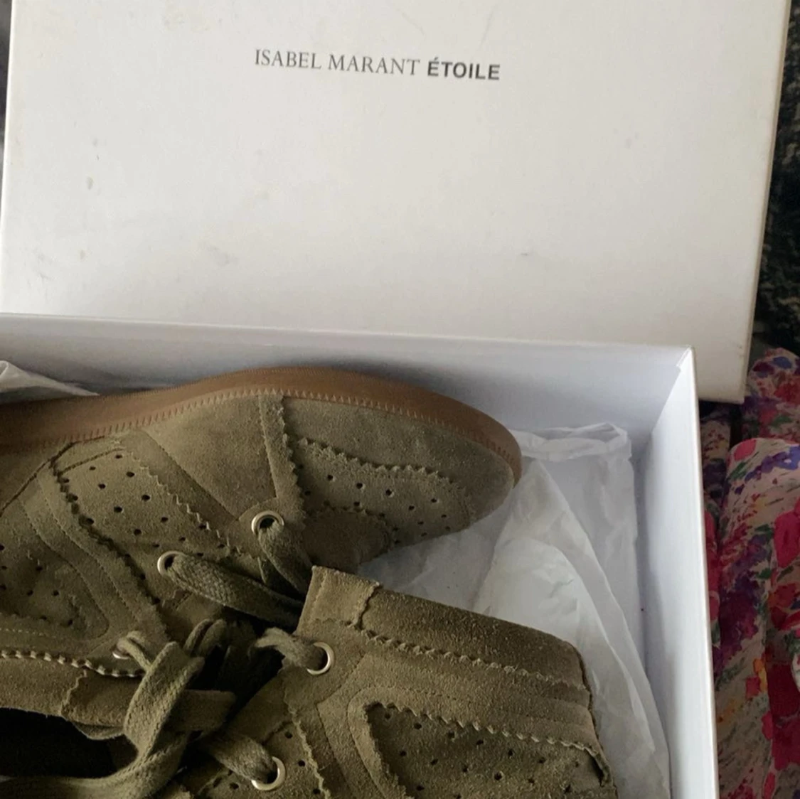 Säljer ett par khakigröna från Isabel Marant Étoile i mjuk mocka med perforerade detaljer och snörning. Skorna har en platt gummisula i brunt och en diskret kilklack för extra höjd. Bra skick, sällan använda 💗
