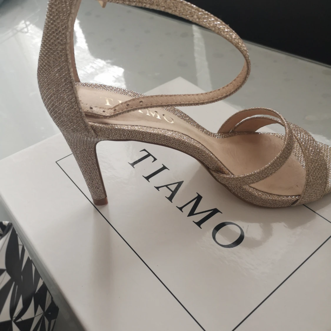Väldigt fin guld skor från tiamo.. Använd bara en kväll till festen... Jättebra skick.. Kvittot finns