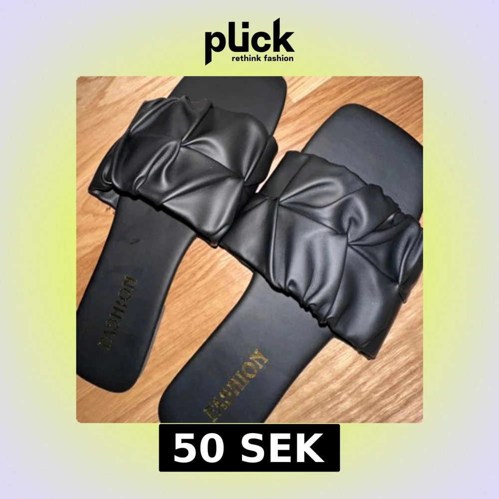 Oanvända nya Stilrena svarta sandaler med en bred, vadderad rem som ger en modern look. Perfekta för en avslappnad stil under varma dagar.