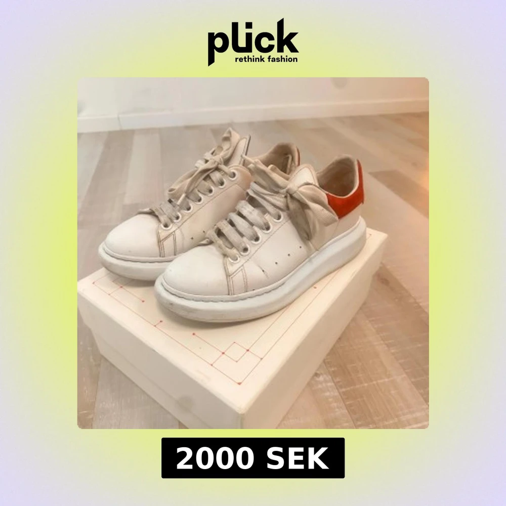 Säljer mina Alexander mcqueens köpta 2023! Slitna inuti men inget märkvärdigt slitet utanpå! Skickar me extra skosnören, lätt att tvätta!