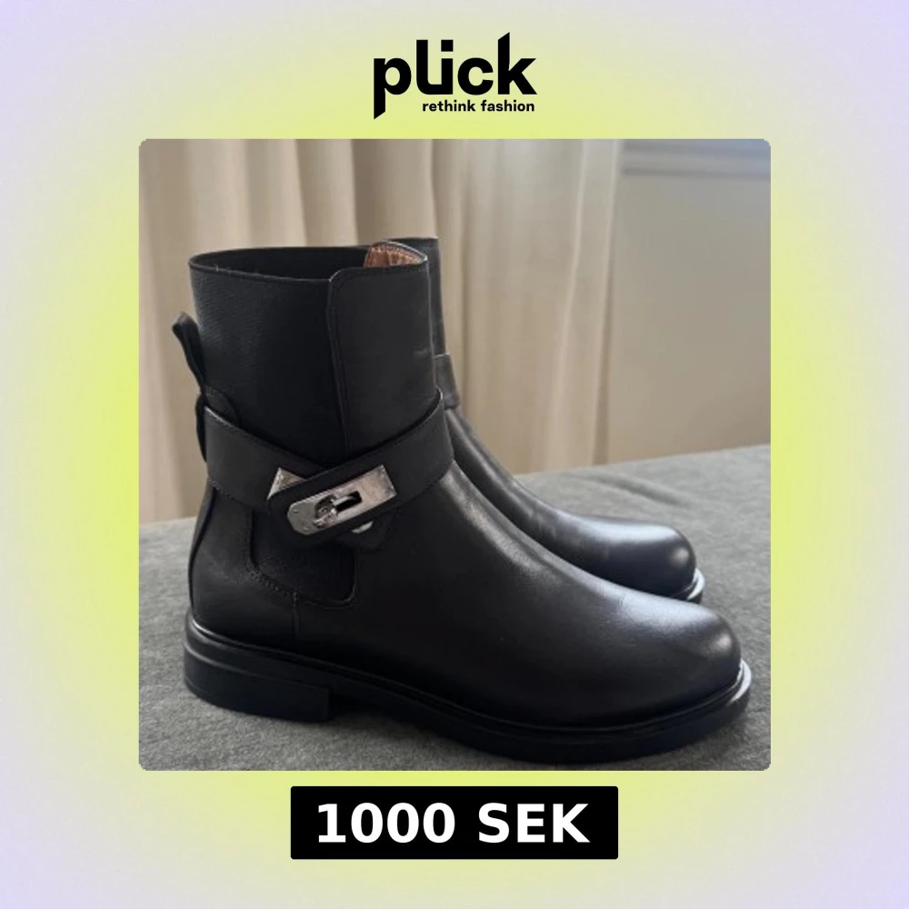 Svarta läderboots med gummisula.