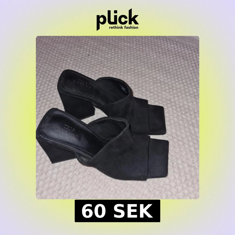 Snygga svarta klackskor med öppen tå och fyrkantig form, wide fit. Fårn Asos. Skorna har en bred klack och är tillverkade i mocka imitation. Nypris 349kr