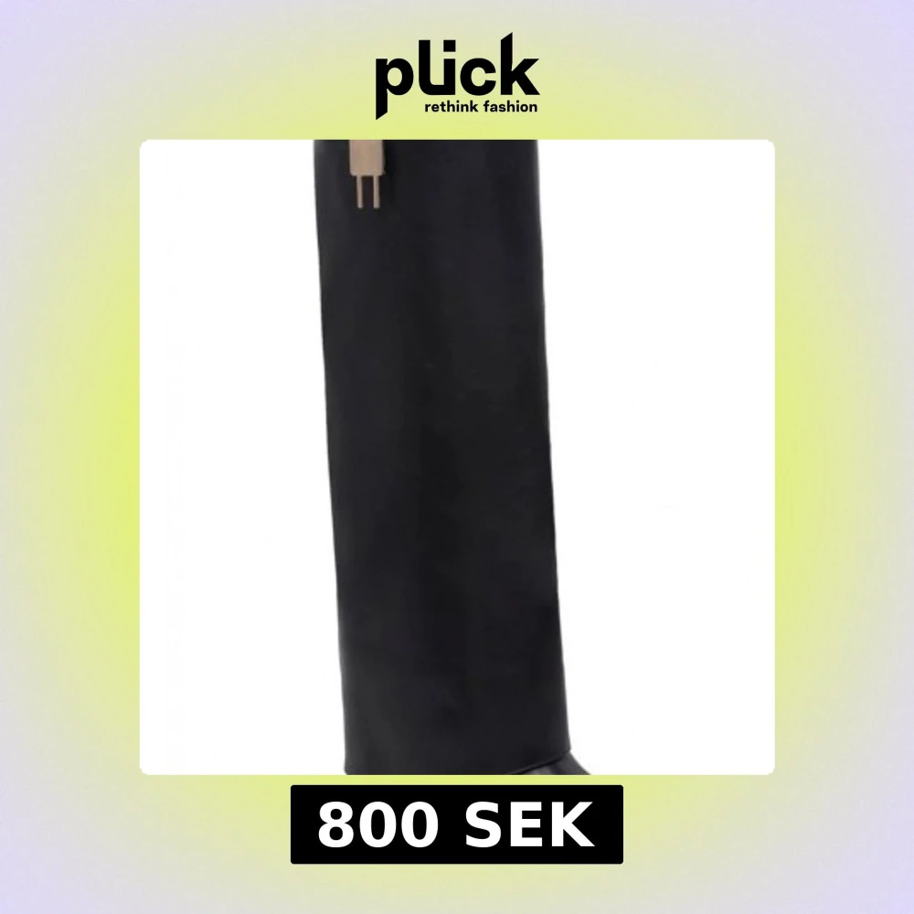 Snygga svarta stövlar i skinn med en diskret dragkedja på sidan. Perfekta för en stilren look. Överlappande del som gör stövlarna unika och så snygga! Dessutom snygga gulddetaljer! Helt nya pga fel storlek! 100% veganskt skinn!