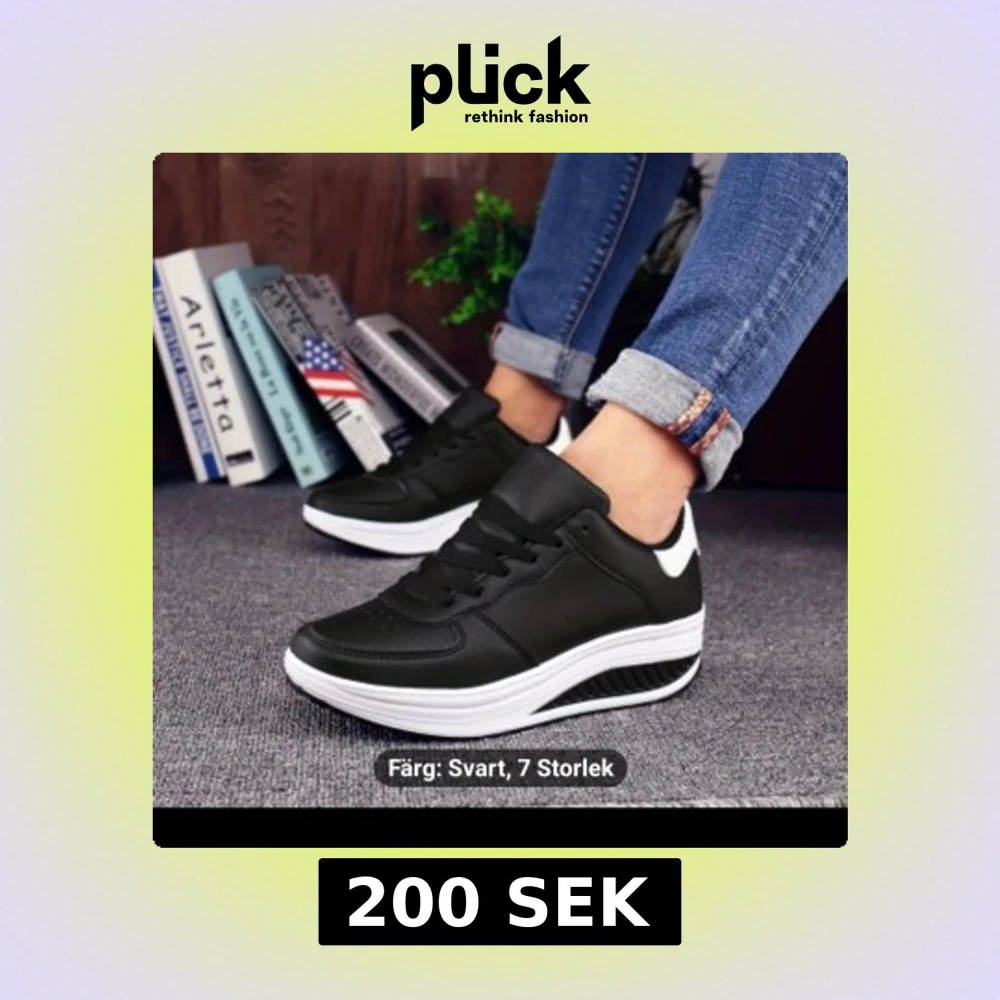 Snygga svarta sneakers med vit, tjock sula och svarta snören. Skorna har en sportig look och passar perfekt till jeans eller träningskläder. Ovandelen är i syntetmaterial och sulan har bra grepp. Perfekta för dig som vill ha bekväma och stilrena skor.