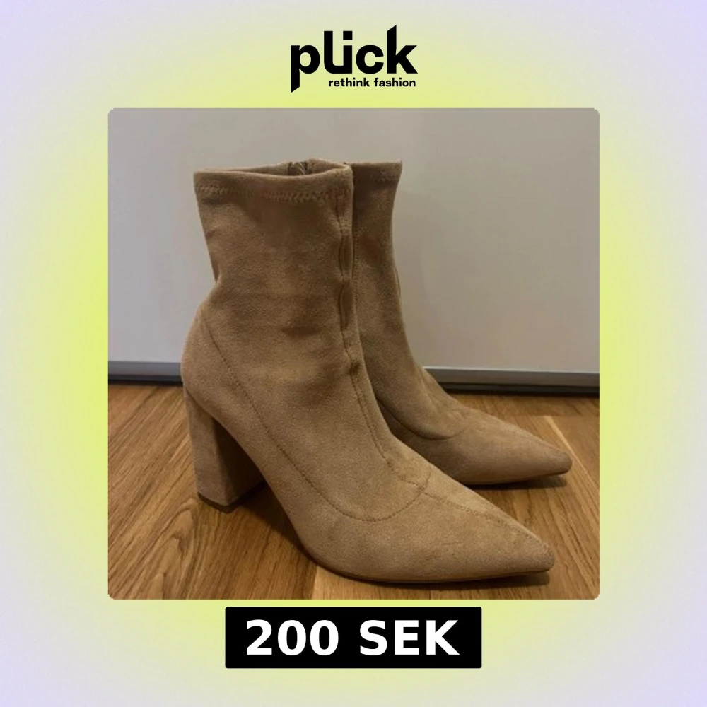 Snygga beige boots i mocka med spetsig tå och klack. De har en praktisk dragkedja på sidan för enkel på- och avtagning.