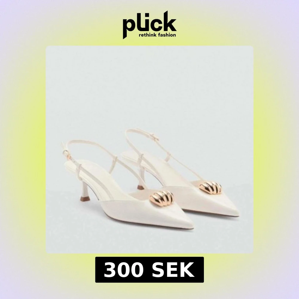 Stilrena vita pumps från Mango med spetsig tå och låg klack. Skorna har en guldfärgad detalj framtill och smala remmar med spänne runt hälen. De är helt oanvända och endast testade 1 gång 🥰