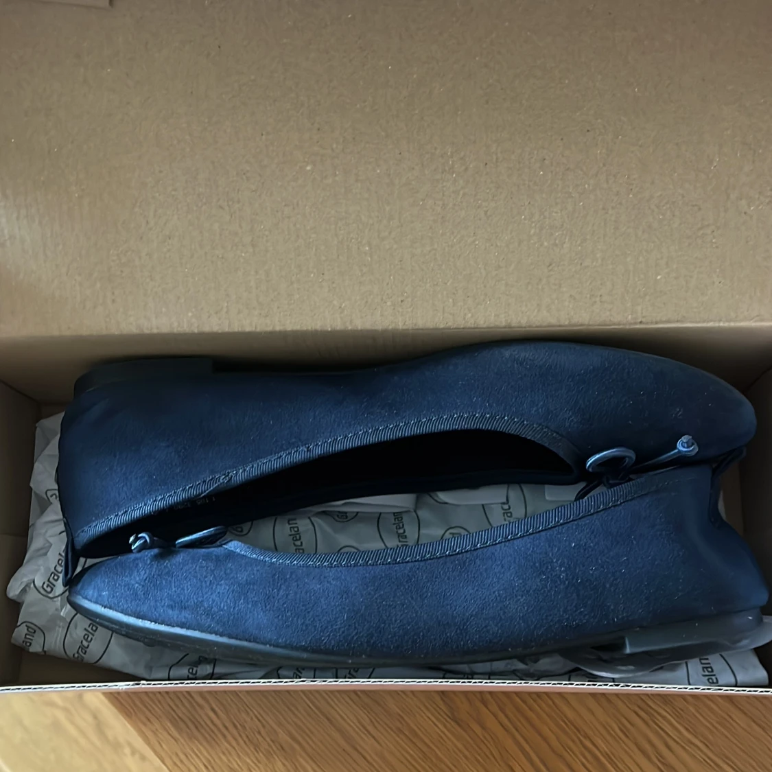 Säljer mina jätte fina mörkblåa ballerina skor då de va för stora, använda 2 gånger och köpta i somras 💞