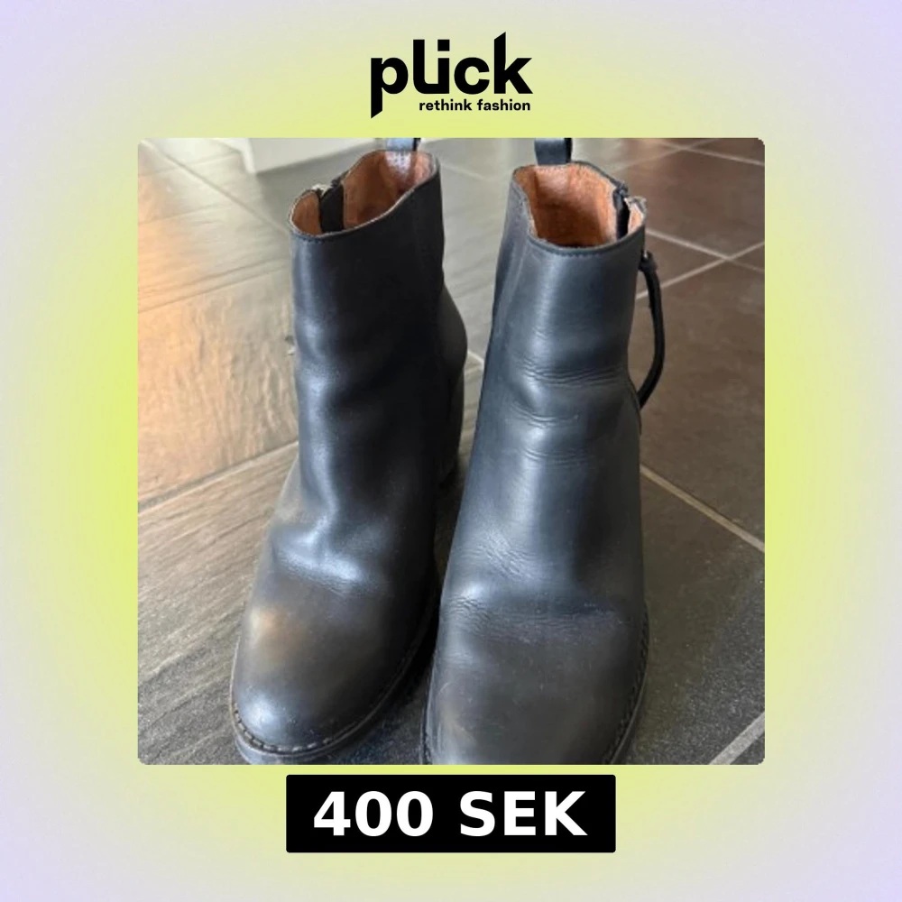 Svart stövlett i äkta skinn. Bra skick. 7cm klack.
