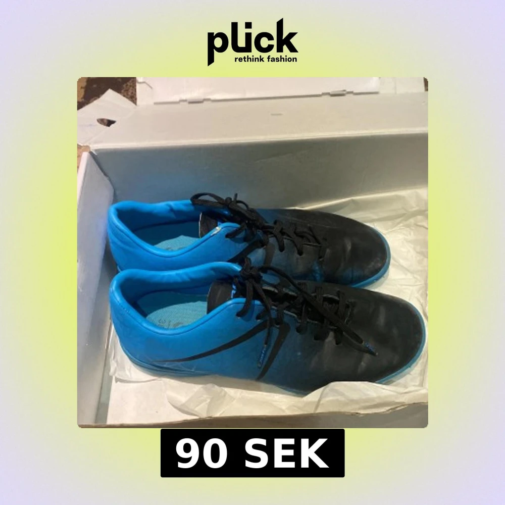 Snygga fotbollsskor i svart och blått med snörning. Perfekta för spel på planen med en stilren design och bra grepp på sulan.