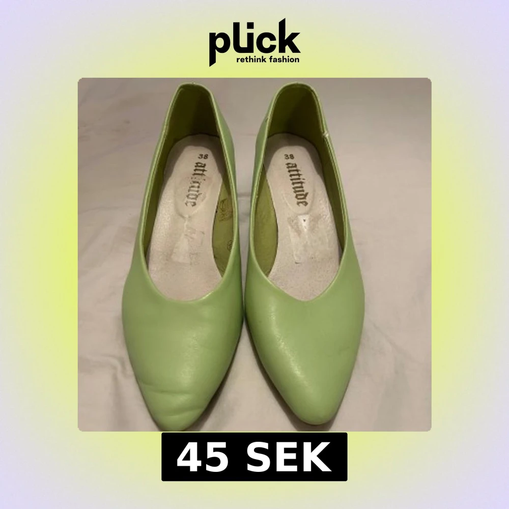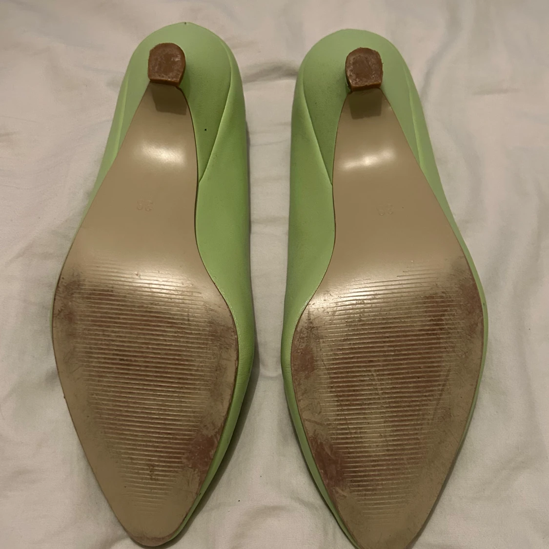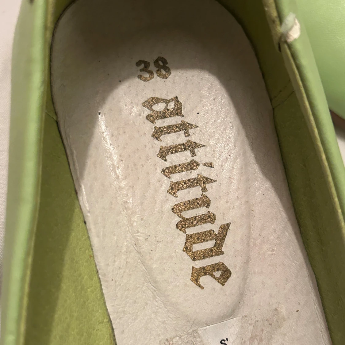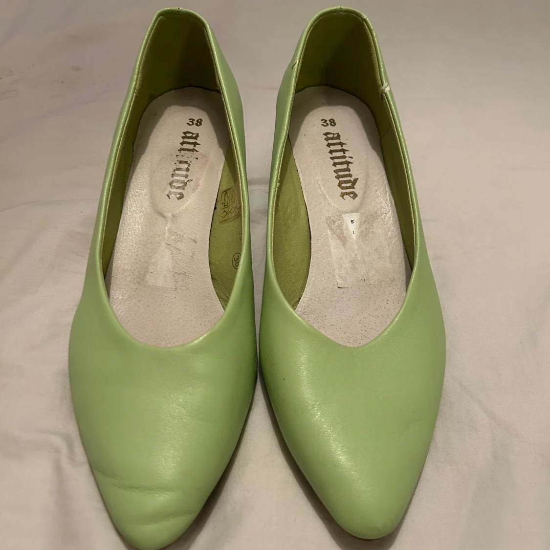Snygga ljusgröna klackar från Attitude med spetsig tå och låg klack. Storlek 38