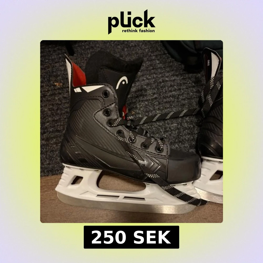 Säljer ett par svarta HEAD S90 JR skridskor i storlek 38. Köpta för 2 år sedan för ca 600kr och endast använts 2-3 gånger. Säljer då de är för små.