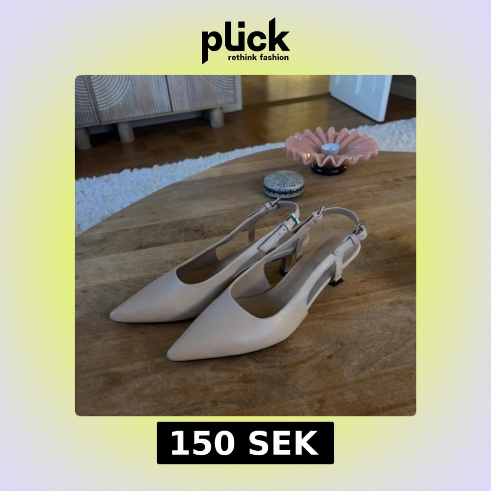 Snygga beige pumps från Duffy med spetsig tå och låg klack. Skorna har öppen häl med justerbart spänne och är tillverkade i syntetmaterial. Perfekta för dig som gillar stilrena och eleganta skor med en modern touch. Pumpsen är endast använda en gång så skicket är som nya.