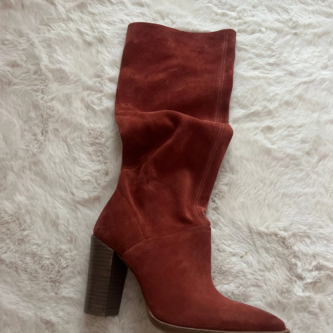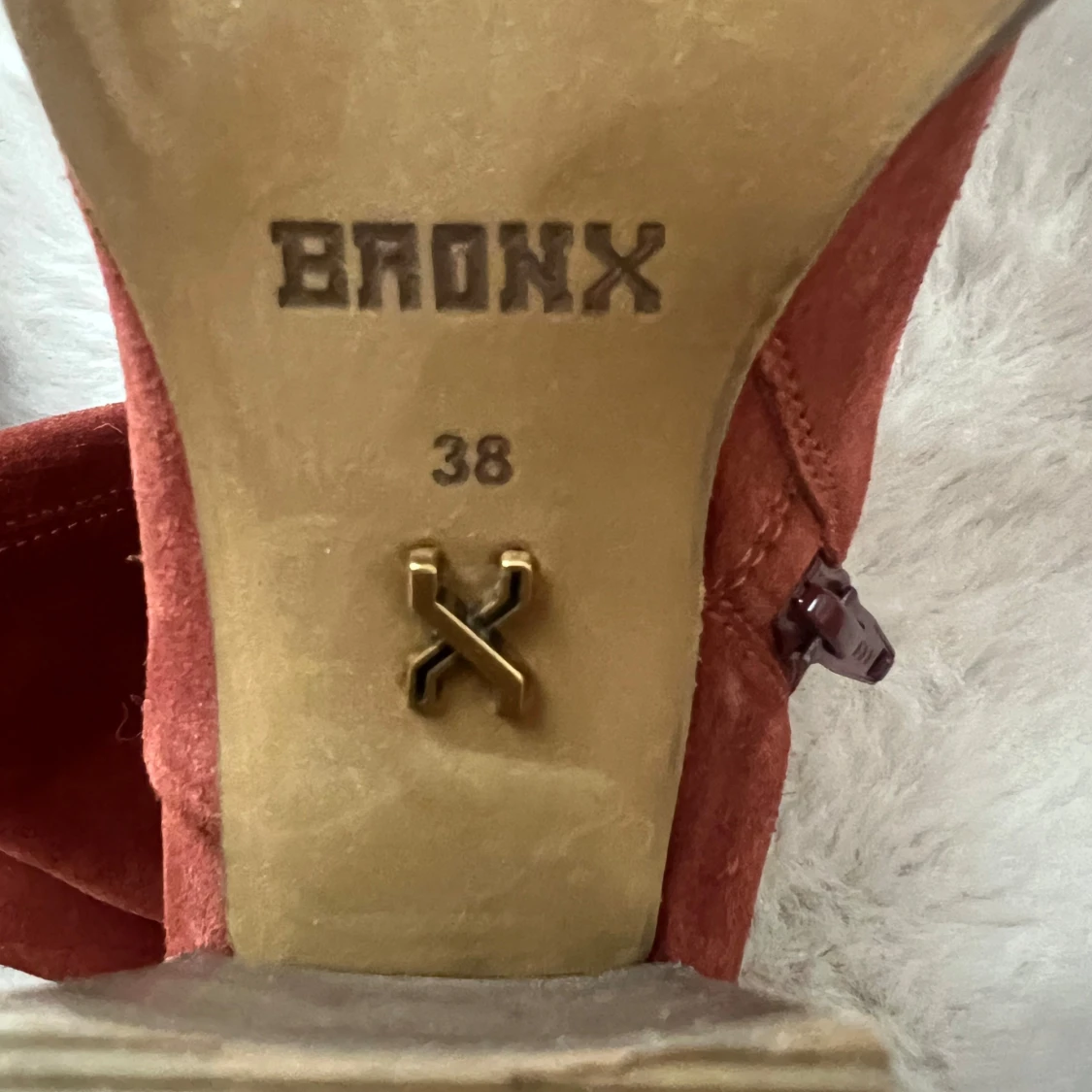 Snygga stövlar i rostbrun mocka från Bronx med spetsig tå och hög klack. Stövlarna har dragkedja på insidan och en chunky träfärgad klack som ger extra attityd. Perfekta för dig som vill sticka ut med en cool och trendig look.