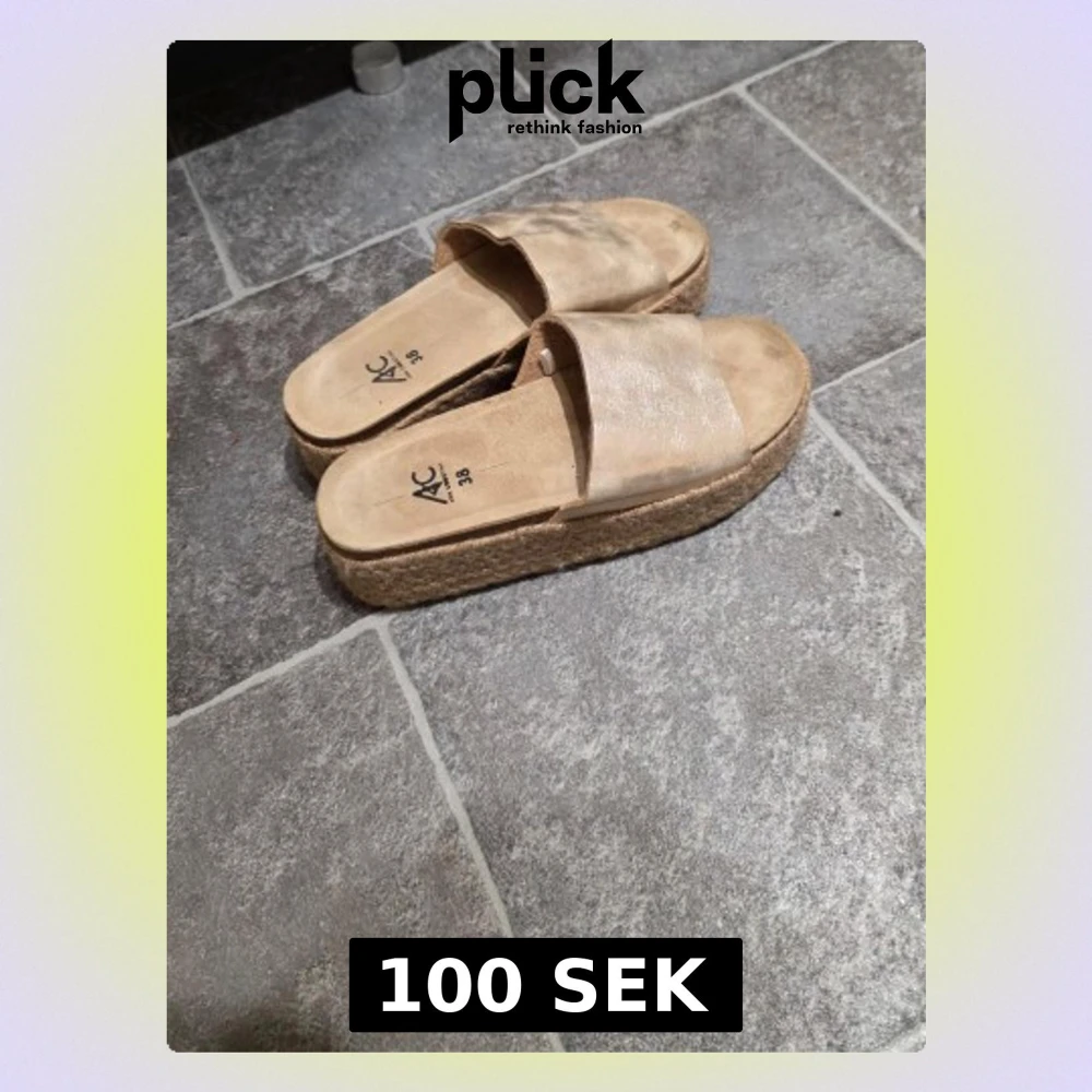 Säljer ett par beige sandaler från AC Ann Christine i storlek 38. De har bred rem över foten och en snygg plattformssula med flätad look. Perfekta för varma dagar och ger extra höjd. Materialet känns mjukt och svalt mot huden.