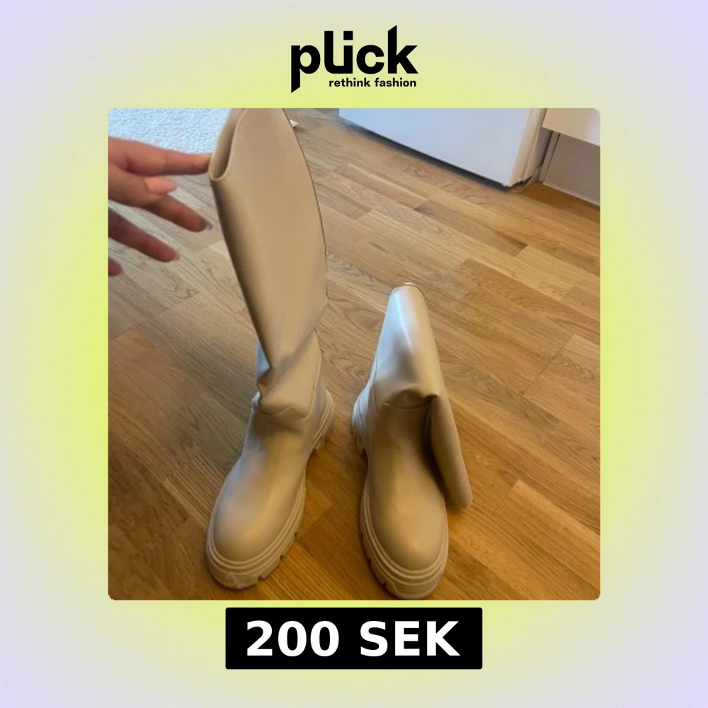 Snygga beige stövlar med hög skaft och grov sula. Perfekta för en stilren look och passar bra till olika outfits.