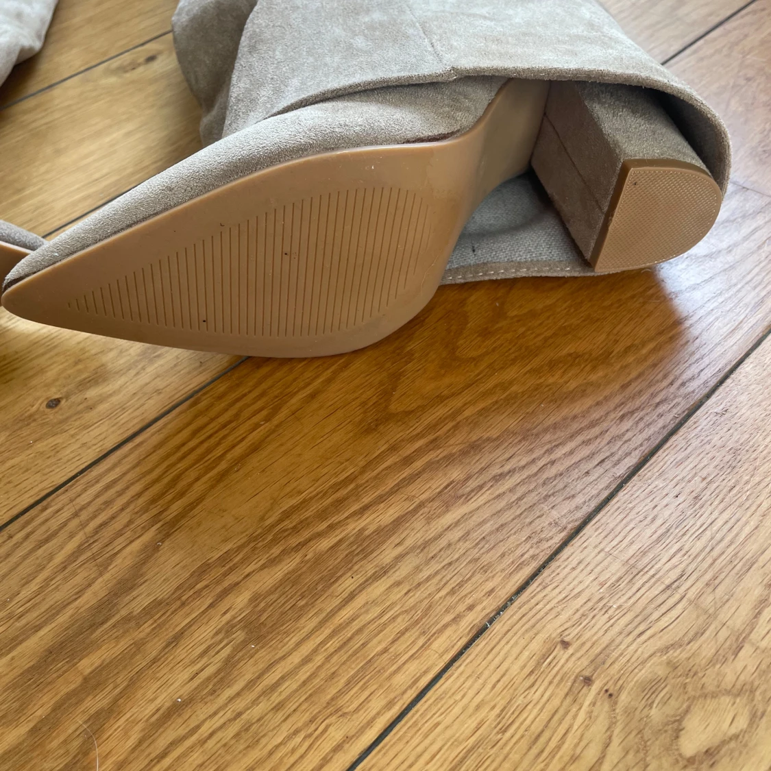 Beigea stövlar i mocka med klack från lululia. Nypris 600kr. Aldrig använda!