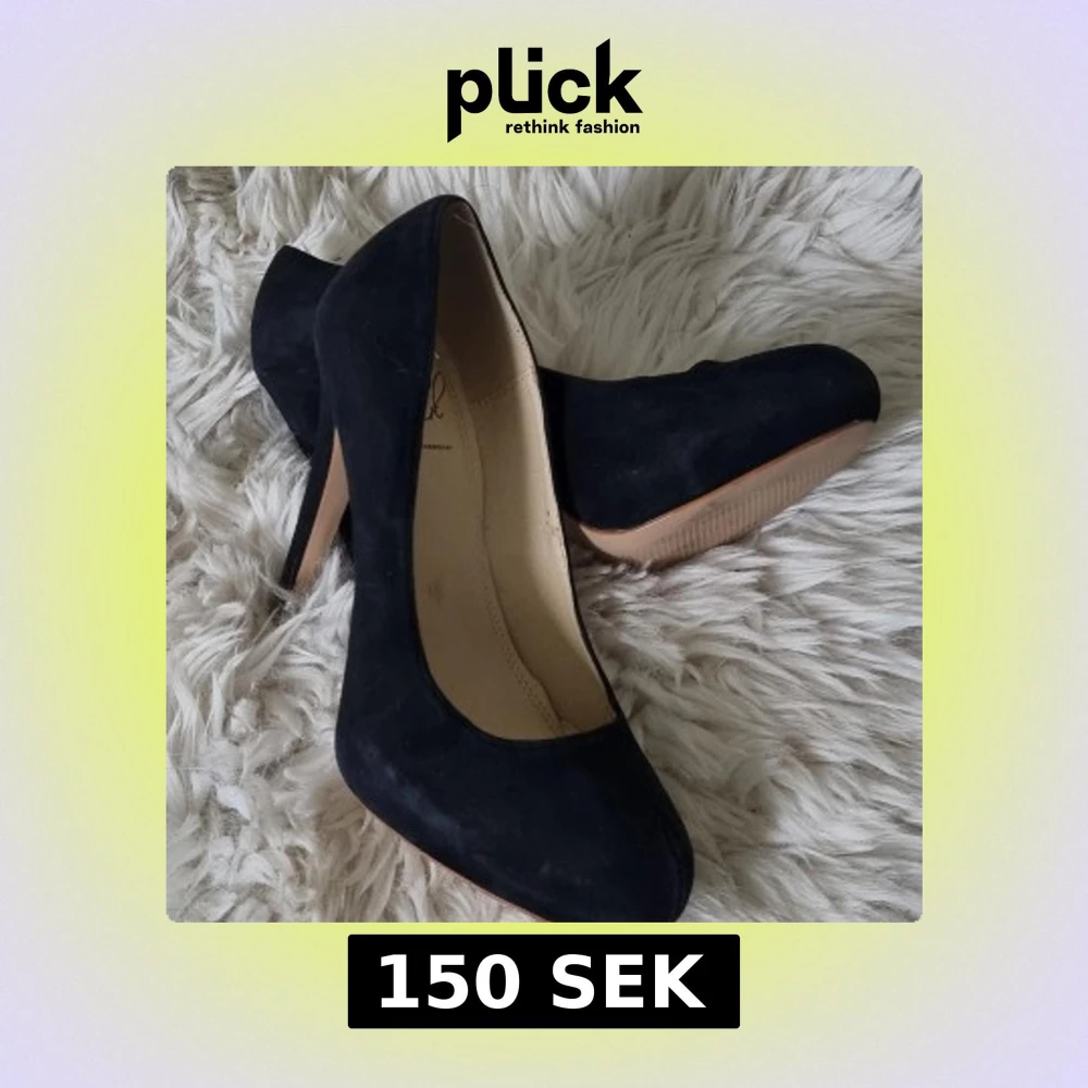 Snygga svarta pumps från märket China girl med rund tå och klack. Skorna är gjorda i mocka och har en klassisk, stilren design med beige innersula och yttersula. 12 cm med 3 cm platå.