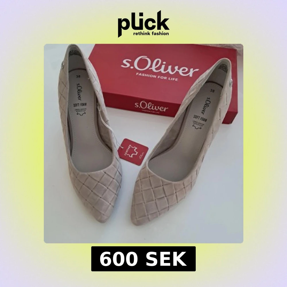 Stilrena pumps från s.Oliver i beige läder med quiltat rutmönster. Skorna har spetsig tå och hög klack, vilket ger en elegant look. Mjukt innersula med soft foam för extra komfort. Perfekta för dig som gillar klassisk men trendig stil.