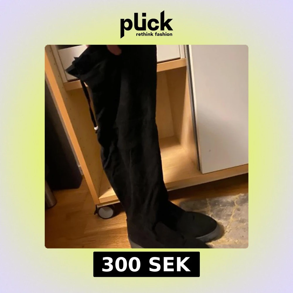 Snygga svarta overknee stövlar med knytning upptill. Perfekta för en stilren look och passar bra till både kjol och byxor. Storlek 38