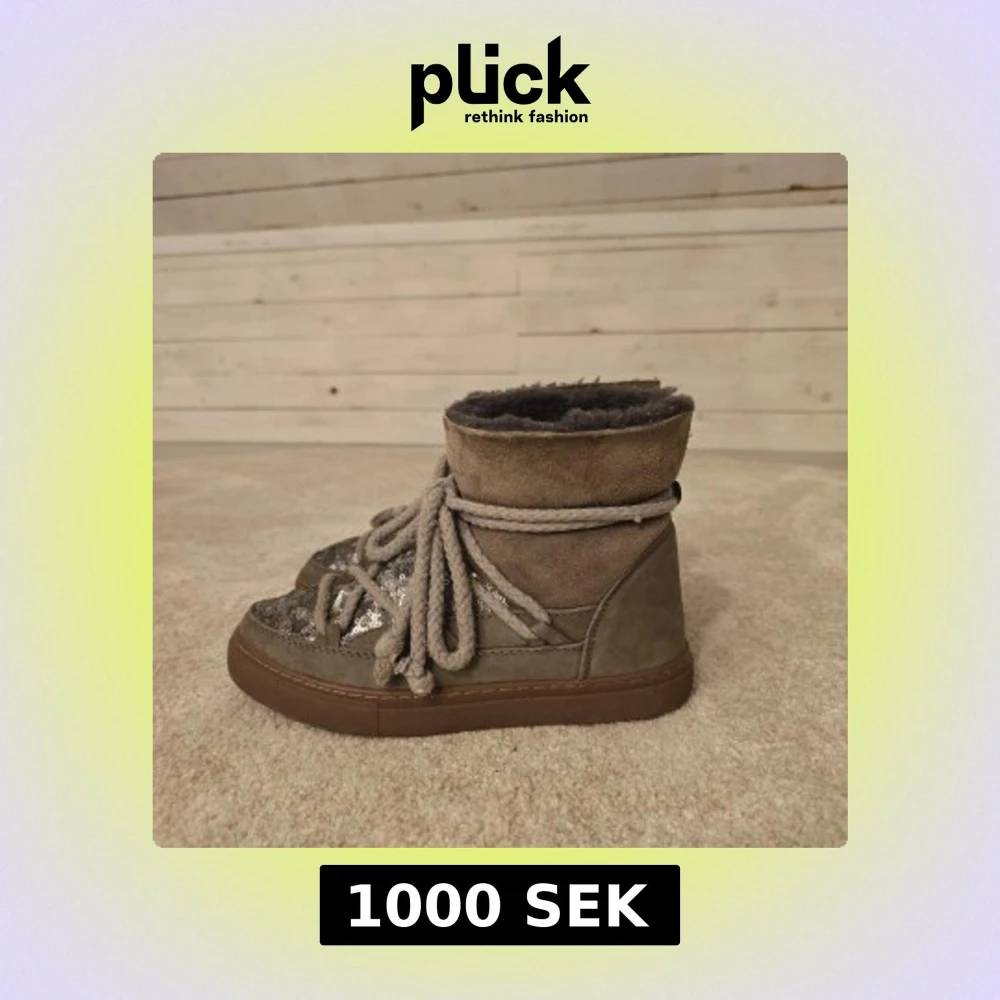 Snygga grå inuikii boots med glittriga paljettdetaljer och tjocka snören. Insidan är fodrad för extra värme och komfort. Perfekta för kyligare dagar. Är använda 1 1/2 säsong.