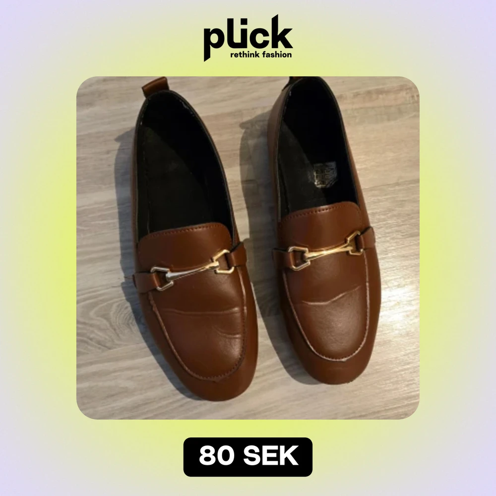 Säljer ett par snygga bruna loafers i skinn med en elegant gulddetalj över foten. De har en klassisk design och ser riktigt stiliga ut. Perfekta för både vardag och fest! Står storlek 39 men är egentligen en 38