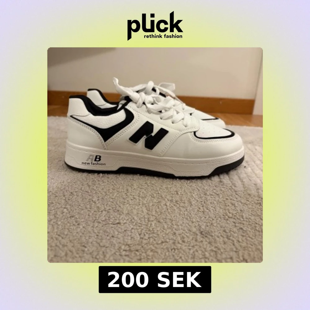 Snygga vita sneakers med svarta detaljer och svart N-logga på sidan. Skorna har snörning, rund tå och platt sula. Tillverkade i syntetmaterial med sportig vibe och kontrastfärgade inslag. Perfekta för dig som gillar stilrena och trendiga sneakers.