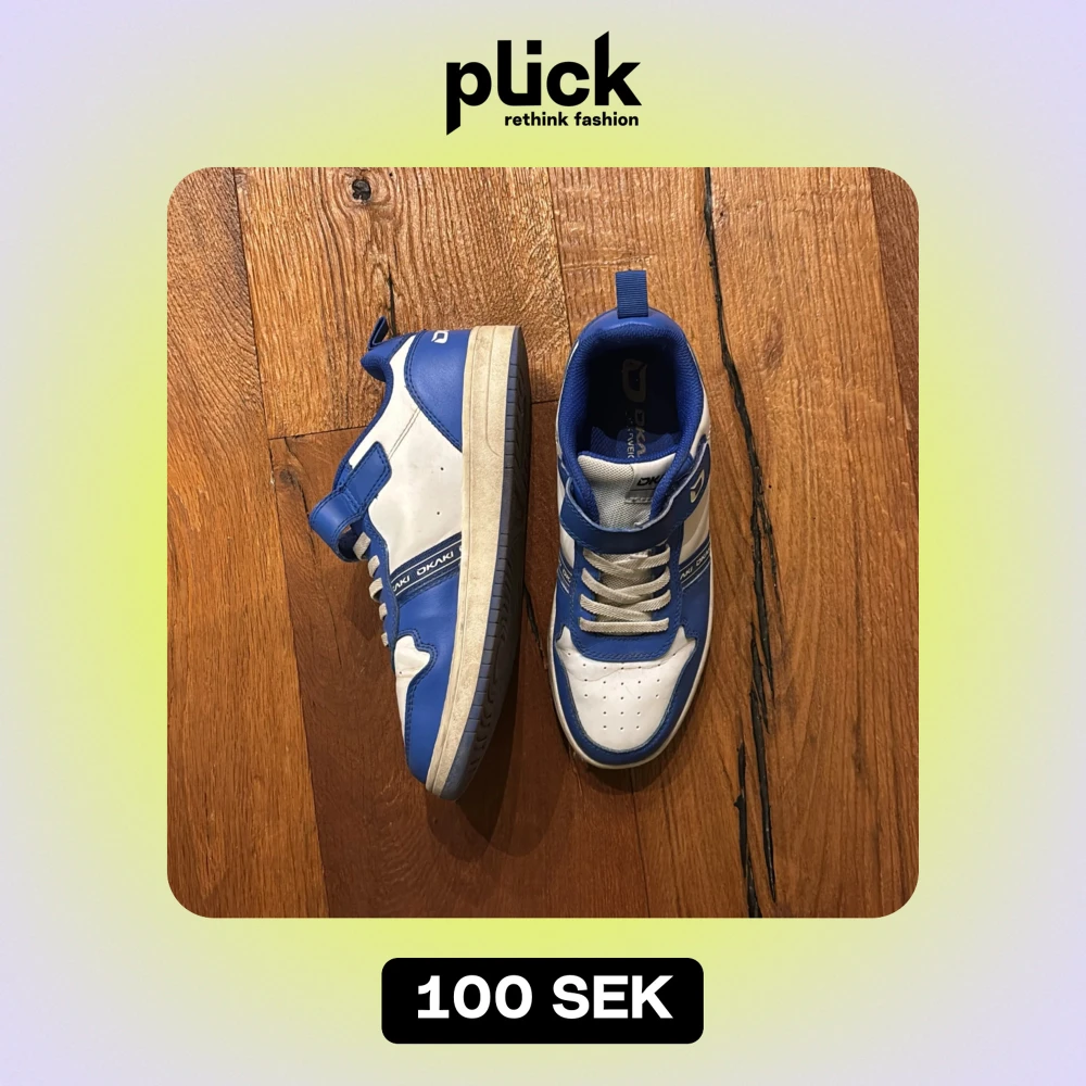 Säljer ett par snygga blå och vita sneakers från Dax Owen. Skorna har en klassisk design med snörning ock kardborreband. Perfekta för vardagsbruk eller träning. De är i bra skick med en robust sula och bekväm passform.