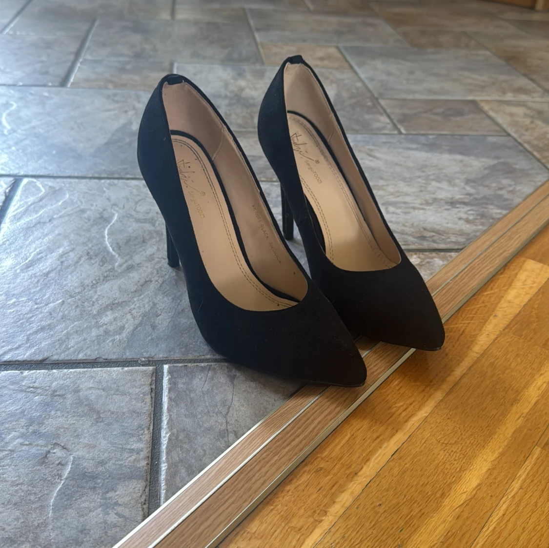 Svarta pumps med spetsig tå och klack