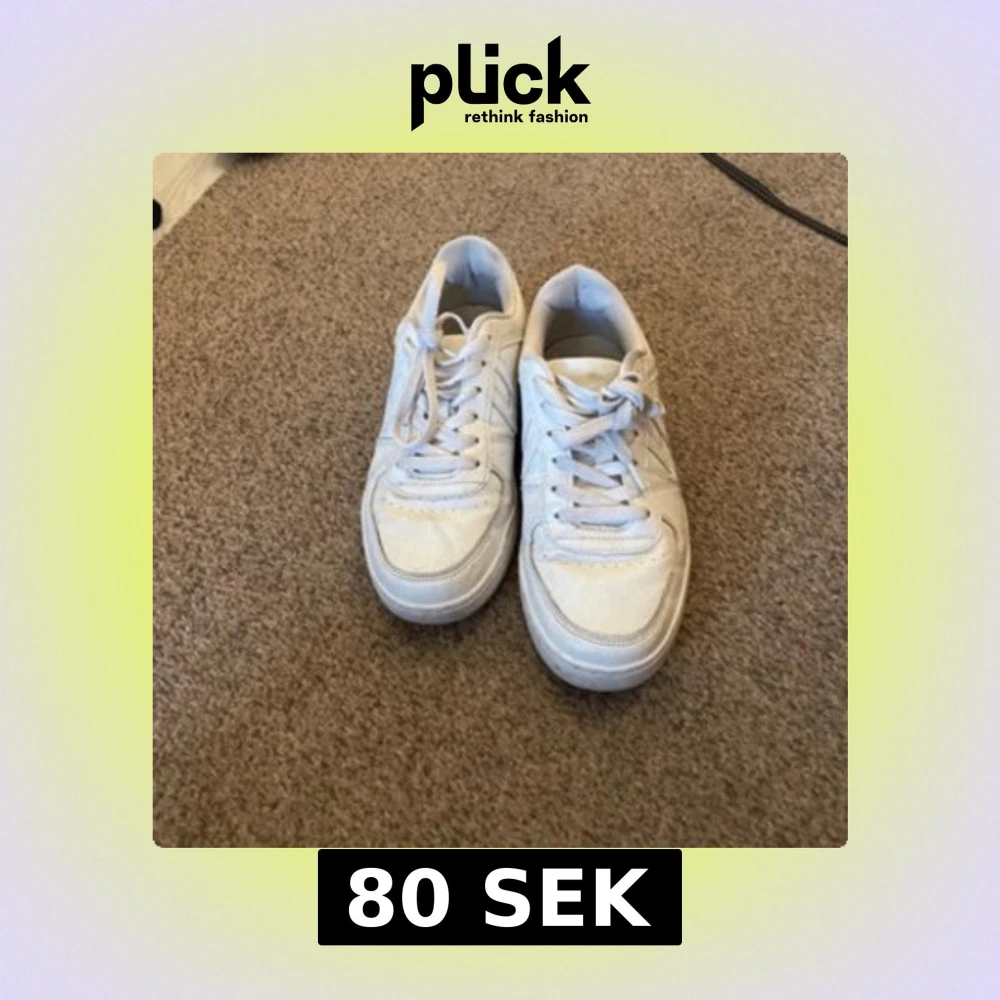 Säljer ett par klassiska vita sneakers med låg profil och snörning. Skorna har en stilren design med detaljer i vitt och rund tå. Perfekta för dig som gillar en clean look.
