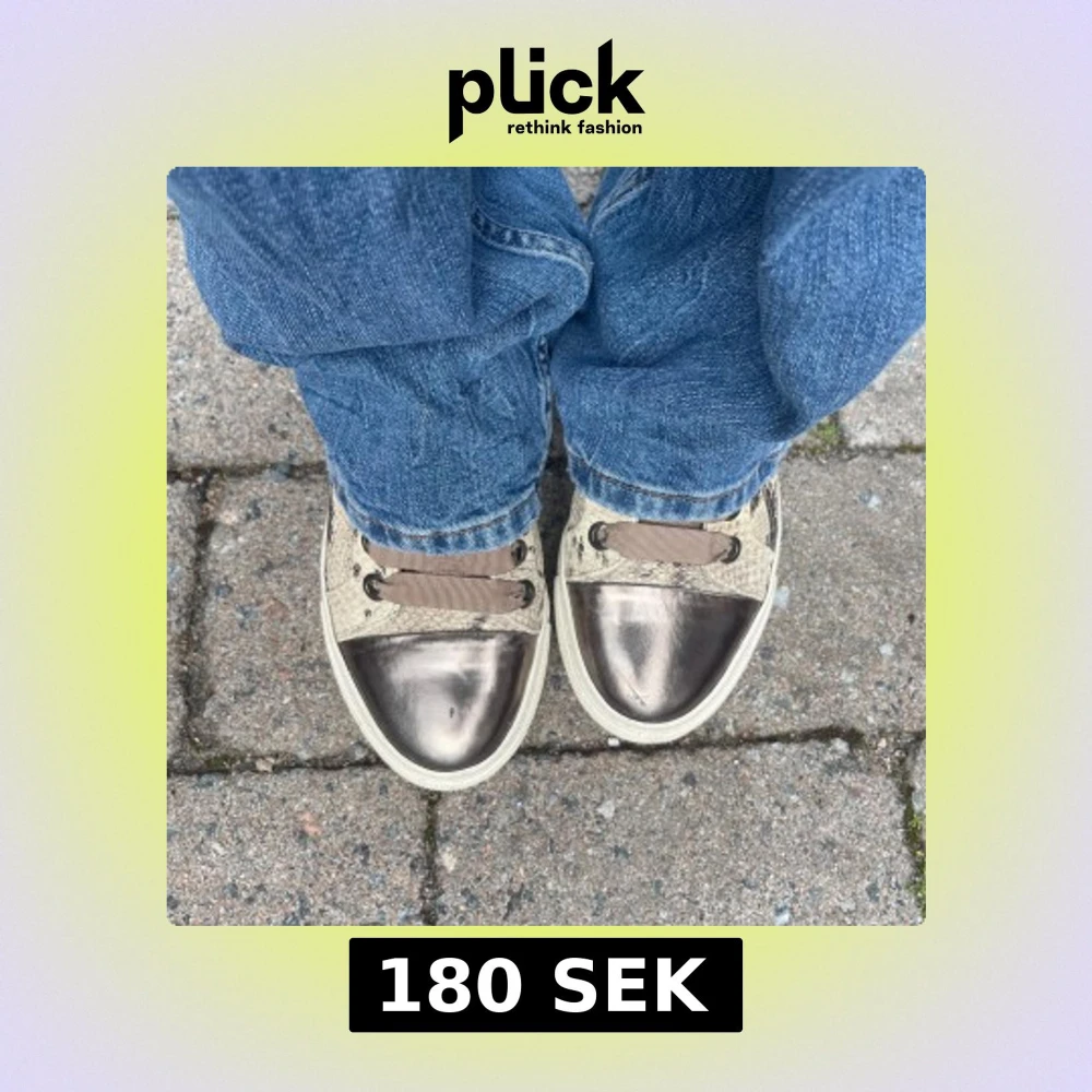 Snygga sneakers med beige och brunt ormmönster, metallicfärgade tår och breda bruna snören. Skorna har platt vit sula och coola detaljer som ger en unik look. Perfekta för dig som vill sticka ut med dina skor.