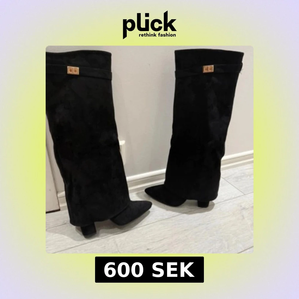 Snygga svarta stövlar i mocka.