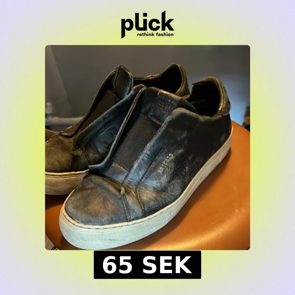 Svarta sneakers från Axel arigato i skinn med vit platt sula och minimalistisk design. Skorna har en stilren look utan synlig snörning och den ikoniska guldpräglade nummerkoden på sidan. Perfekta för dig som gillar clean och modern stil.