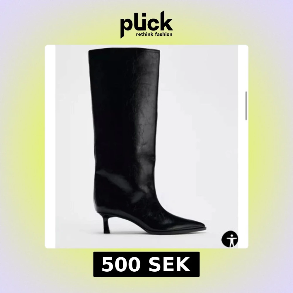 Eleganta svarta stövlar i skinn med spetsig tå och låg klack från zara! Sååå snygga till fest! Säljer då de inte kommer till användning, bara använda 1 gång🥰Nypris 700 kronor, pris kan diskuteras!