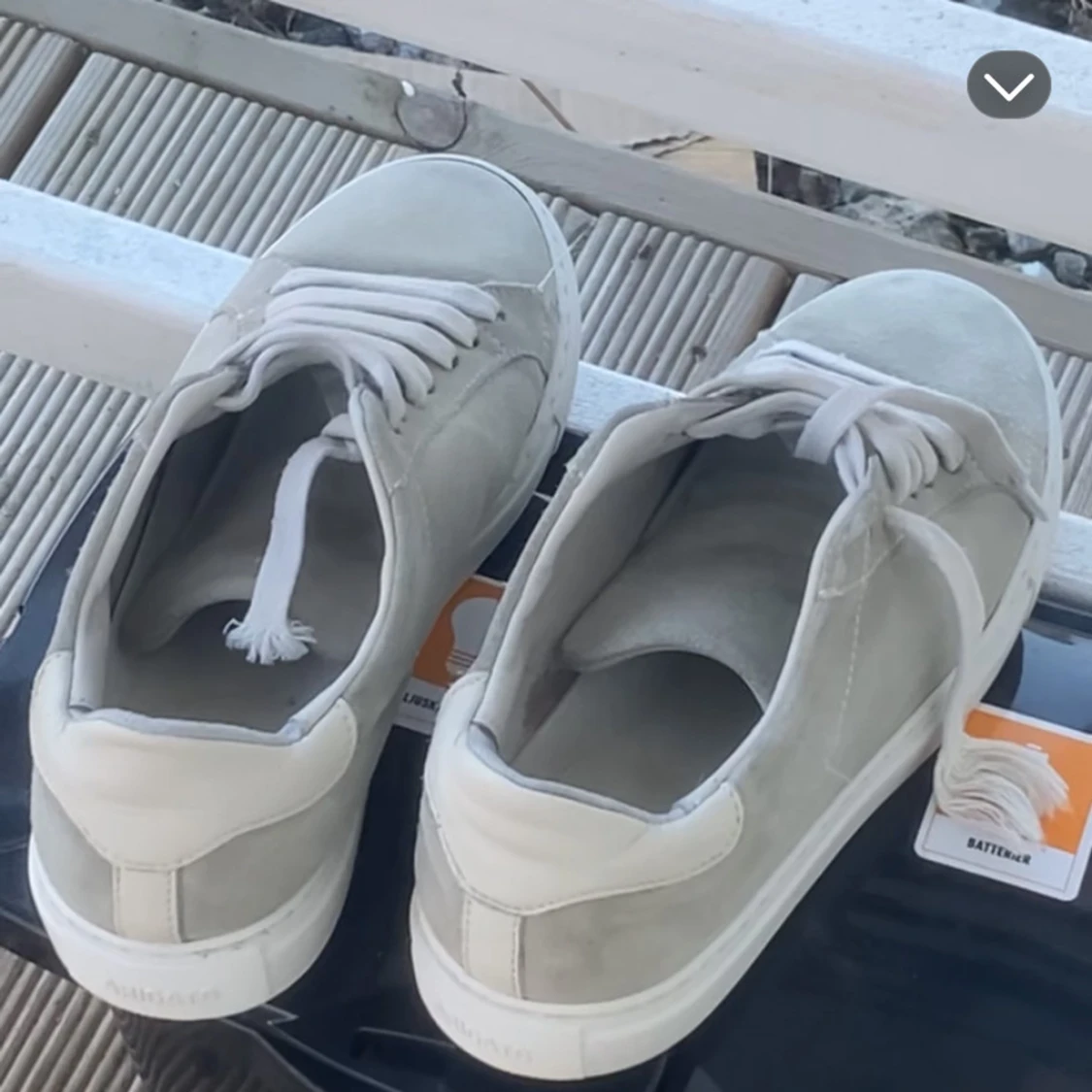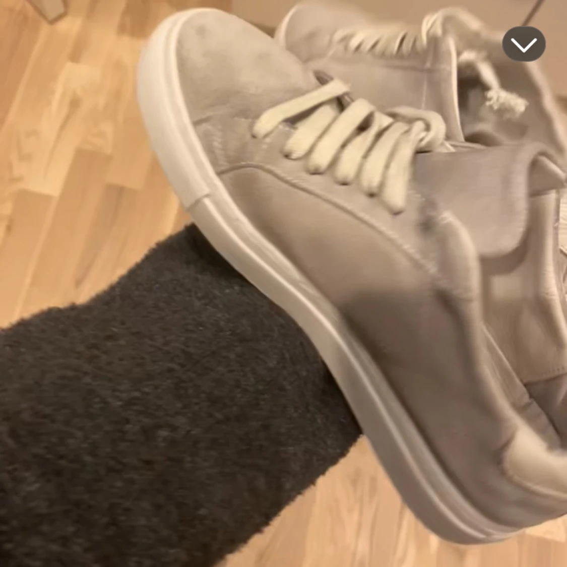 Snygga grå sneakers från axel arigato i mocka med vit platt sula och vita snören. Skorna har en stilren design med rund tå och diskreta detaljer, perfekta för en clean och modern look. Passar dig som gillar minimalistisk stil. Storlek 38 men passar även 39!