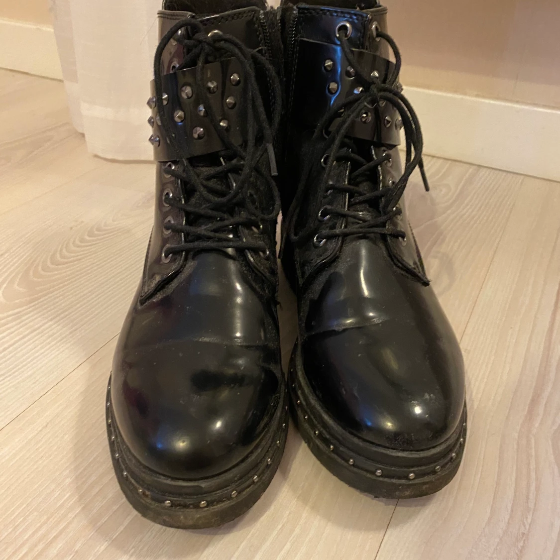 Jag säljer tyvärr dessa kängor som jag fick i julklapp förra året men som har blivit för små. De har super fina detaljer i form av nitar, och är perfekta att bära till tex en kjol💕