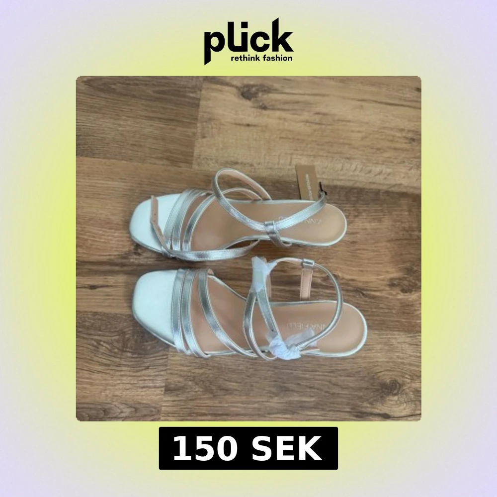 Snygga sandaler i metallic silver från Anna Field med smala remmar och fyrkantig tå. Skorna har en låg klack och justerbar rem runt ankeln. Perfekta för att lyfta din outfit med en glansig touch.
