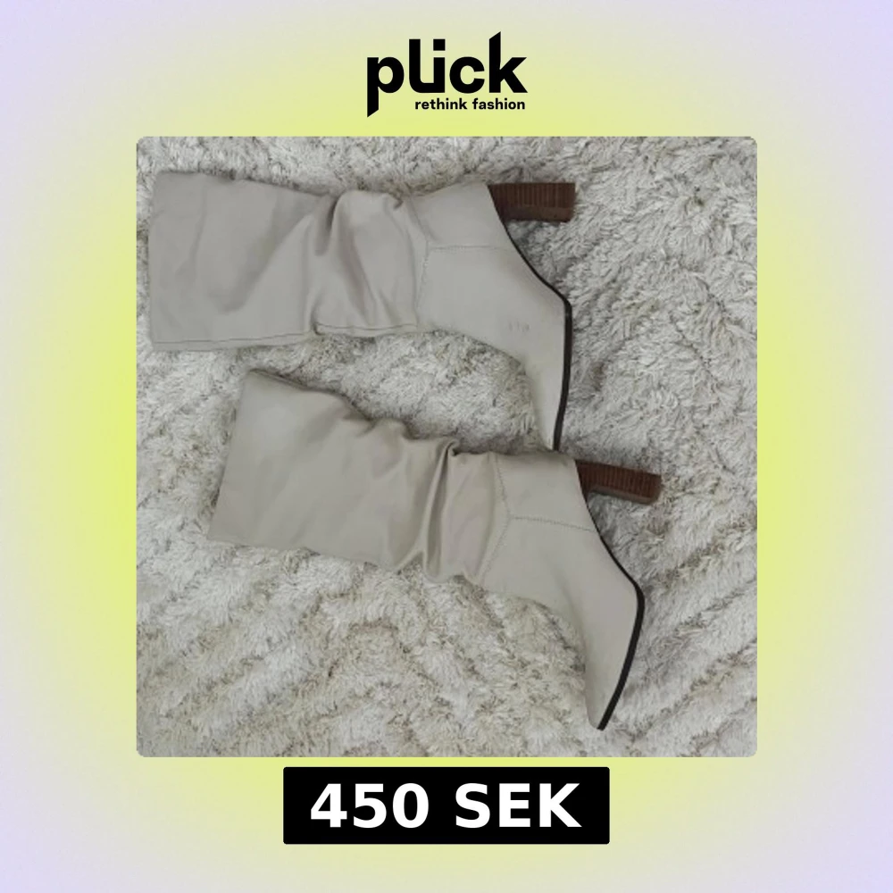 Snygga beige stövlar med träklack och spetsig tå. Perfekta för fest. Använda några gånger. Köpta för 900kr. Stl 38 och normala i storleken ☺️💕