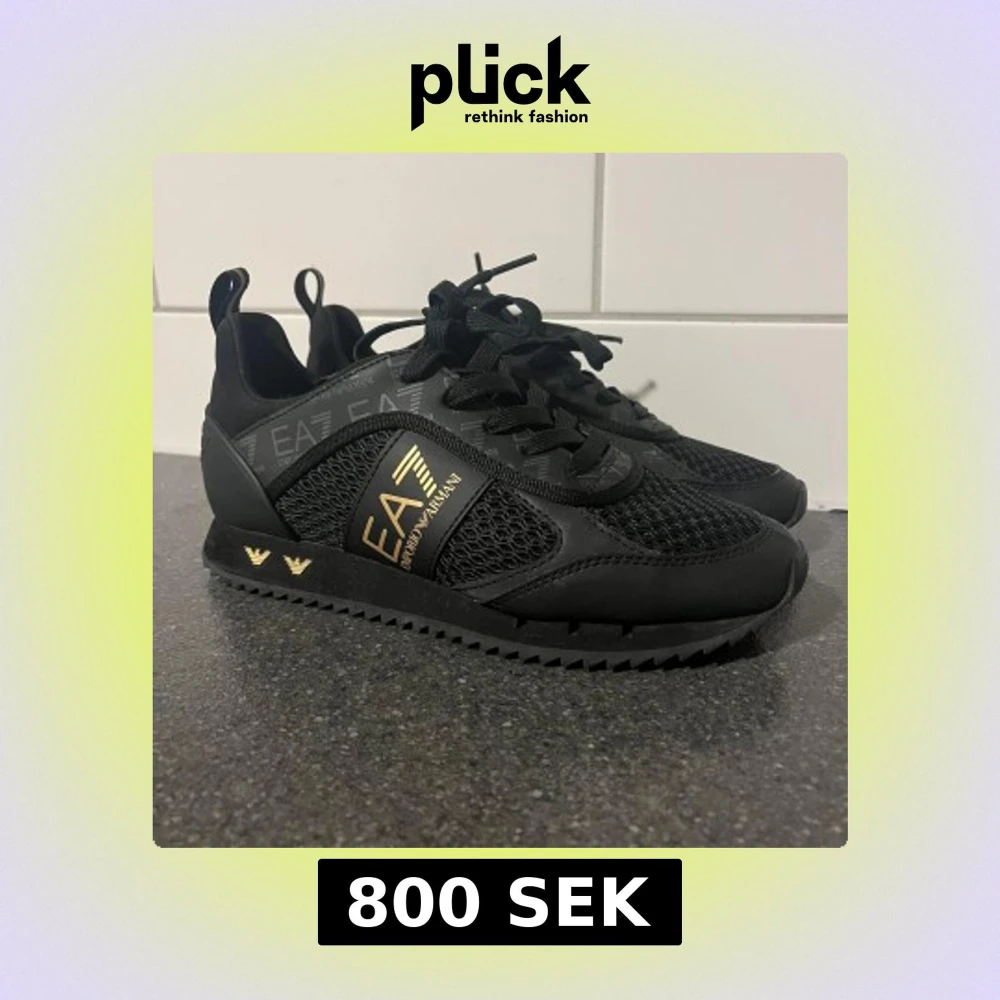 Säljer dessa snygga skor från Armani med guld detaljer. Skorna är endast använda 2 gånger och nypris är 2100kr. Finns inga tecken på användning förutom på baksidan men det går nog att tvätta bort.