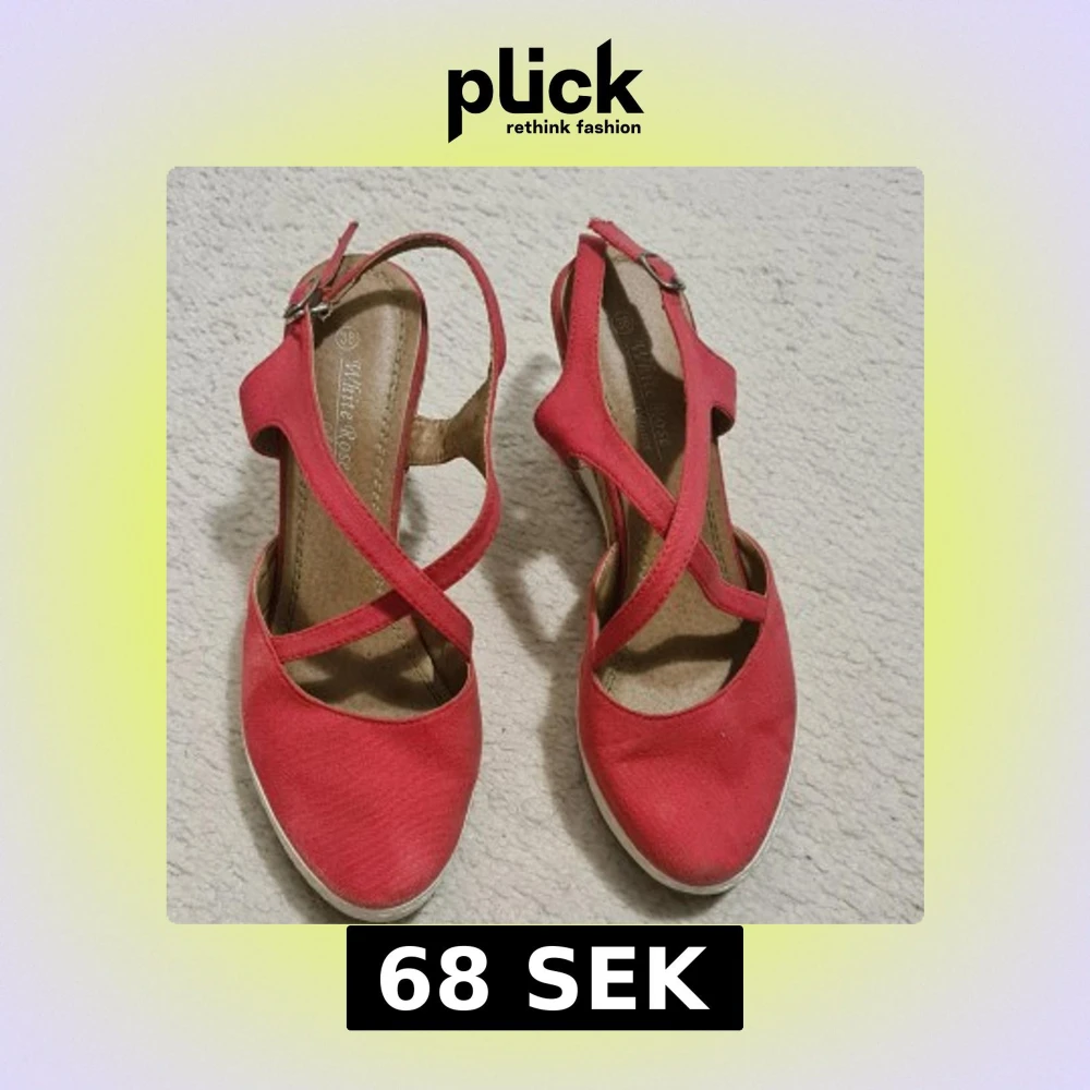 Snygga sandaler med kilklack (9cm) från White Rose i en stark rosa färg. Skorna har korsade remmar över foten, öppen häl och justerbart spänne. Ovandelen är i textil och klacken är i kork med vit sula för en fräsch sommarkänsla.