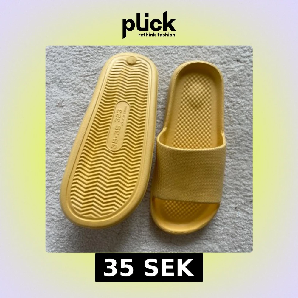 Snygga gula slides sandaler med bred rem och öppen tå. Tillverkade i mjukt syntetmaterial med räfflad sula för extra grepp. Perfekta för sommardagar eller att chilla hemma. Enkel och clean design som passar till allt.