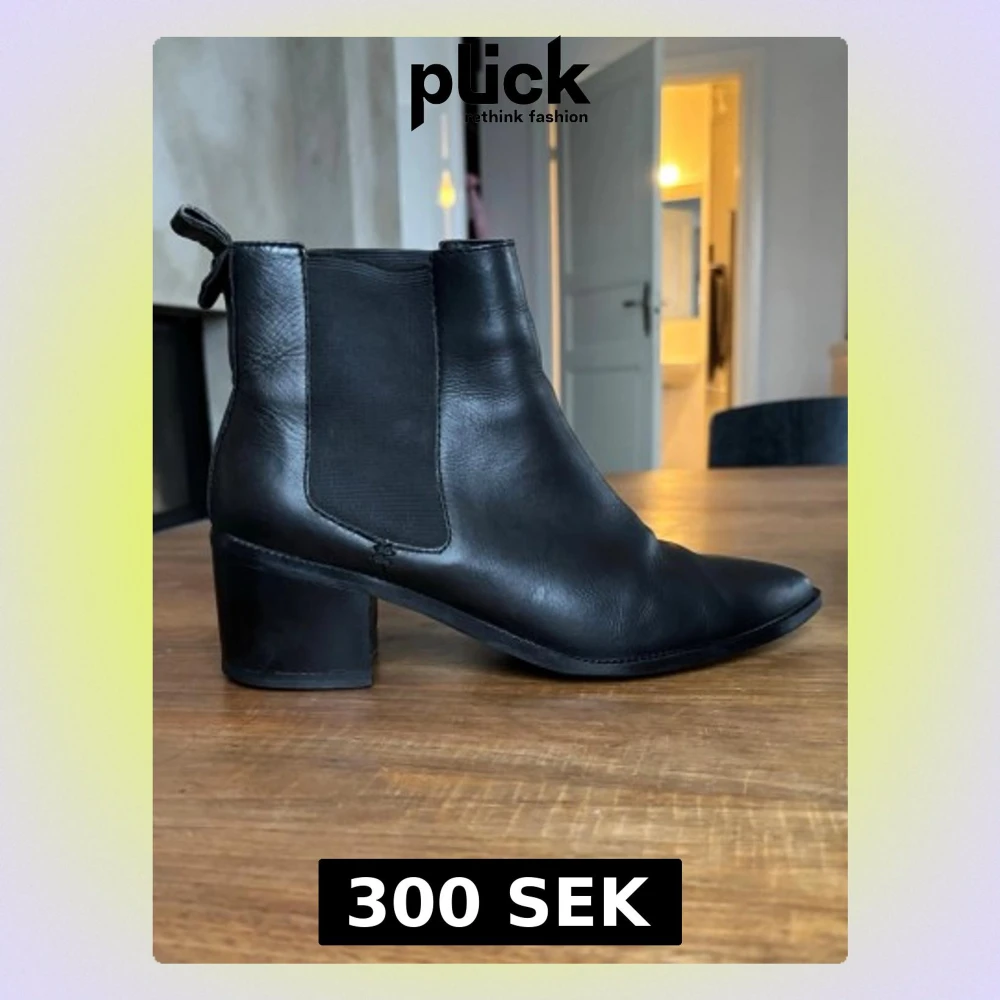 Stilrena svarta chelsea boots med rund tå och låg klack. Tillverkade i slätt skinn med elastiska paneler på sidorna och dragflikar bak för enkel påtagning. .