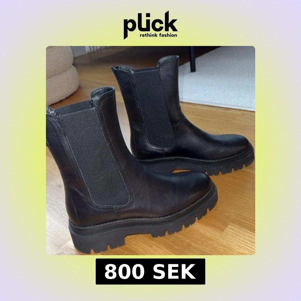Chunky svarta chelsea boots från Tamaris i skinn med grov sula i storlek 38. Använda endast 1 gång