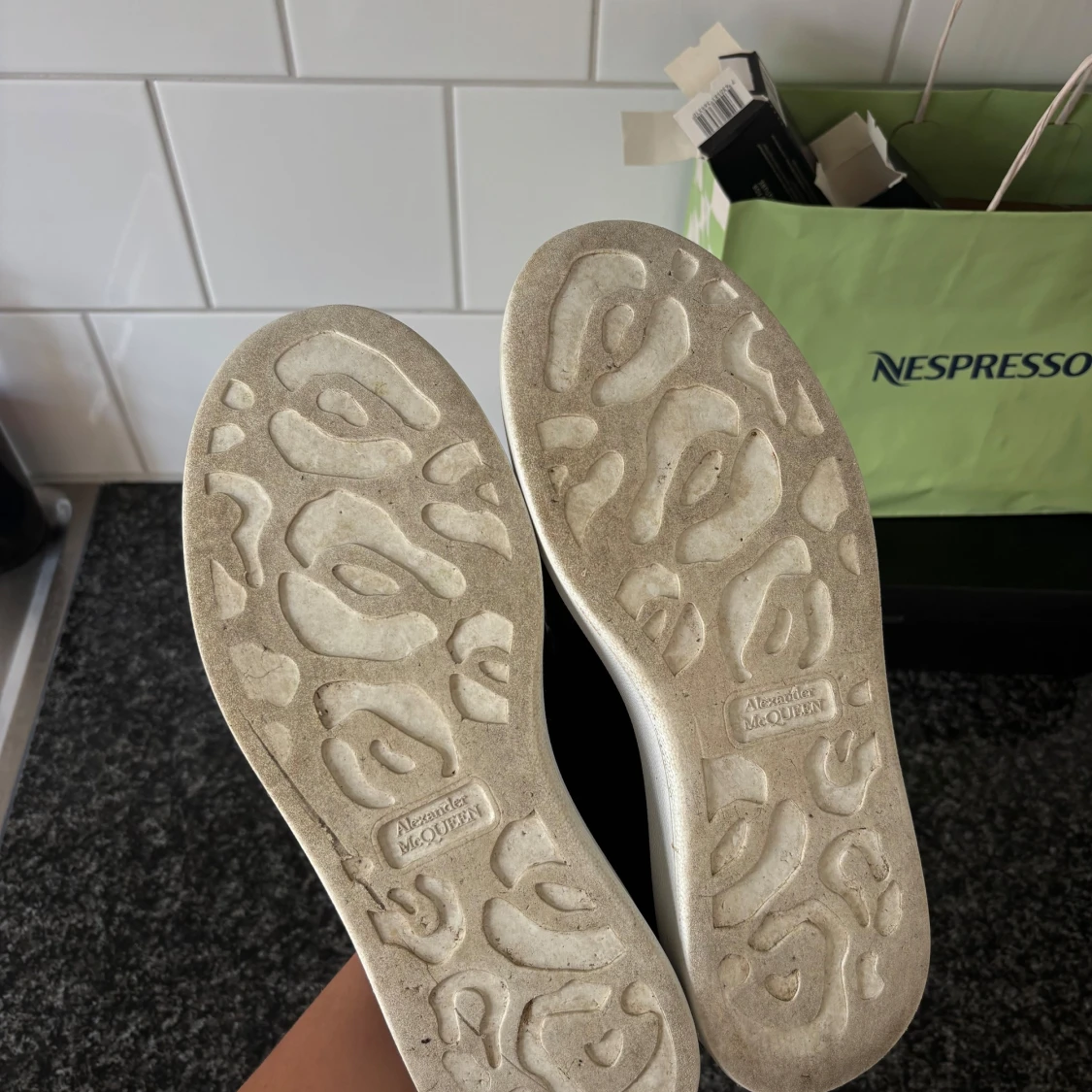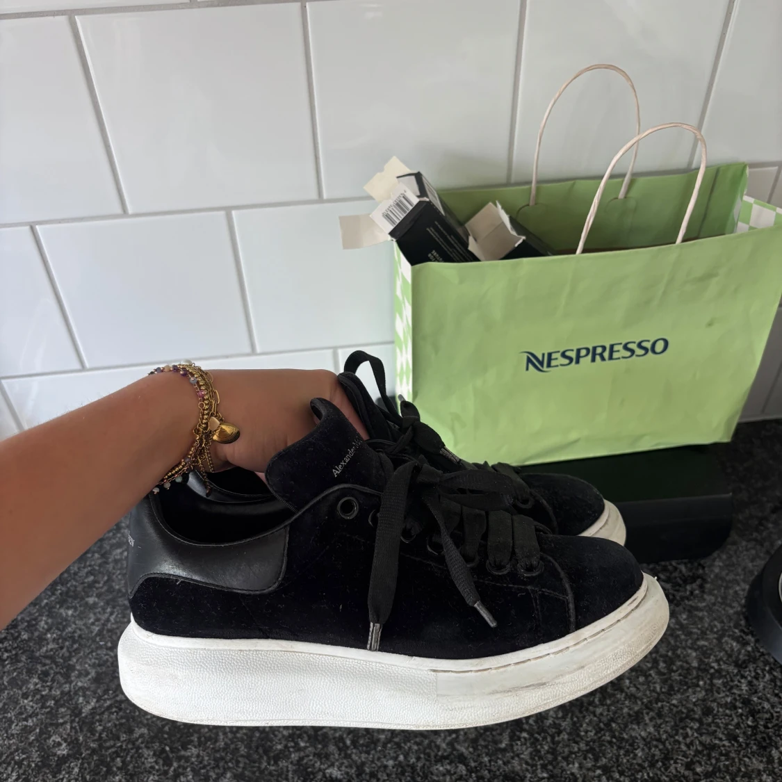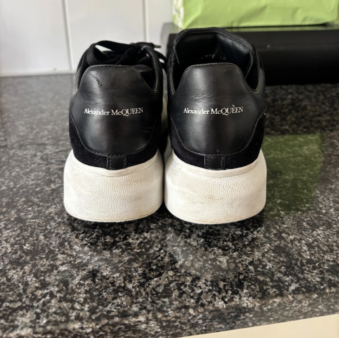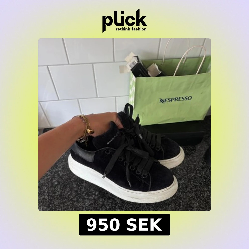 Chunky svarta sneakers från Alexander McQueen med vit plattformsula och svarta skosnören. STORLEK 38. Säljer då dem tyvvär är för stora och blivit stående. Jätte fint skick